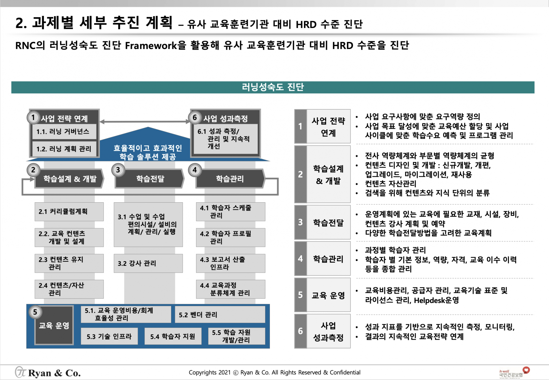 다양한 고객사의 HRD 교육 프로젝트를 수행한 RNC는 기업 및 기관의 특수성을 반영한 맞춤형 교육 프로그램 수립이 가능하도록 컨설팅을 수행 할 수 있는 충분한 경험과 역량을 보유하고 있습니다.